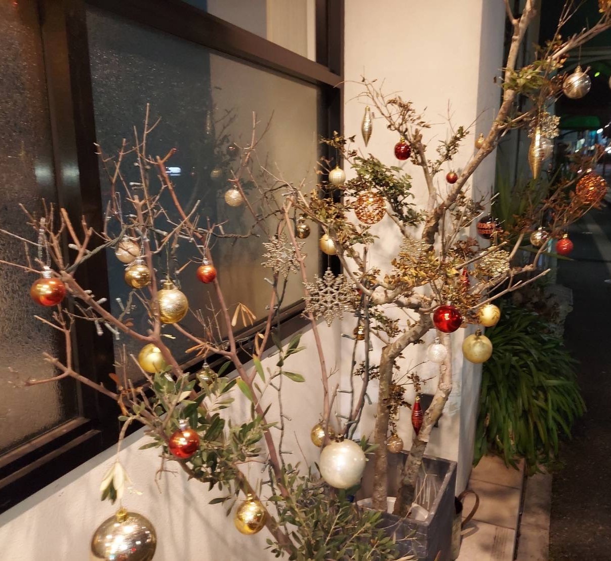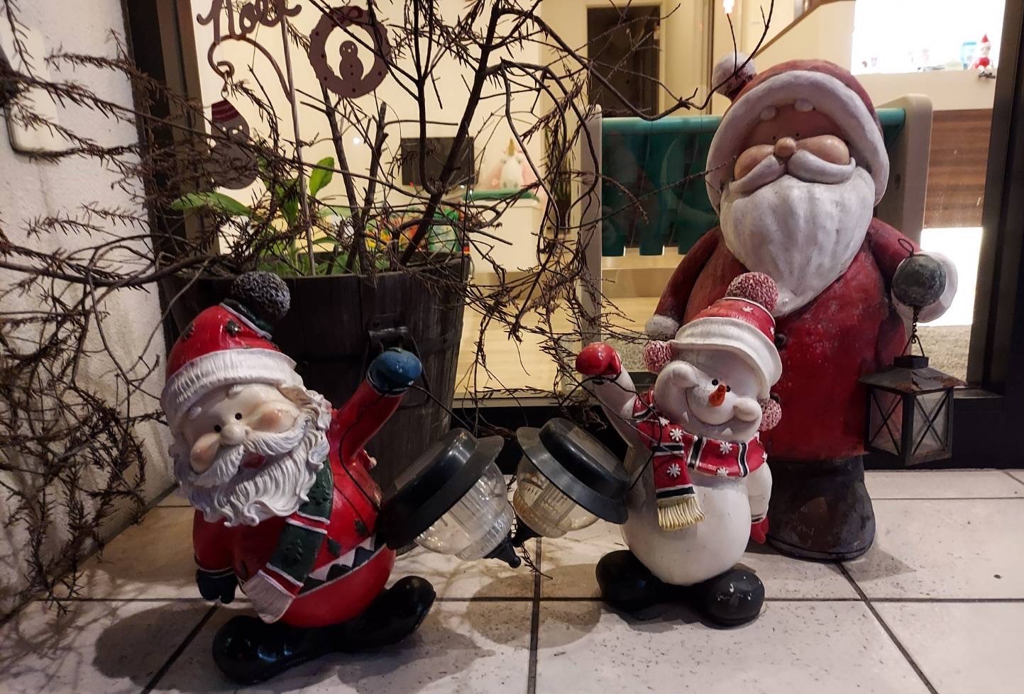 院内だけでなく、玄関周りにもツリーや置物を設置して、外も中もすっかりクリスマスの雰囲気になっています。