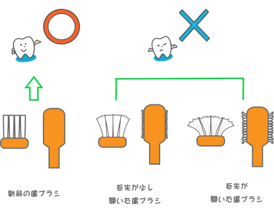 毛先が開いた柔らかいブラシでは、いくら歯みがきをしても歯の表面を撫でているだけになってしまいます。