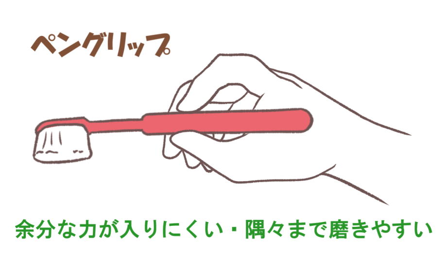 「ペングリップ」は、余計な力が入らず小刻みに動かしやすいので、隅々までていねいに磨くことができます。