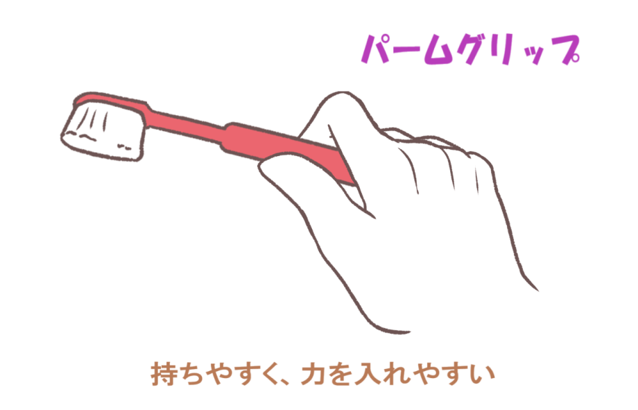 「パームグリップ」は、持ちやすく力が入れやすいため、小さなお子さまや握力が低下している高齢の方などに適しています。
